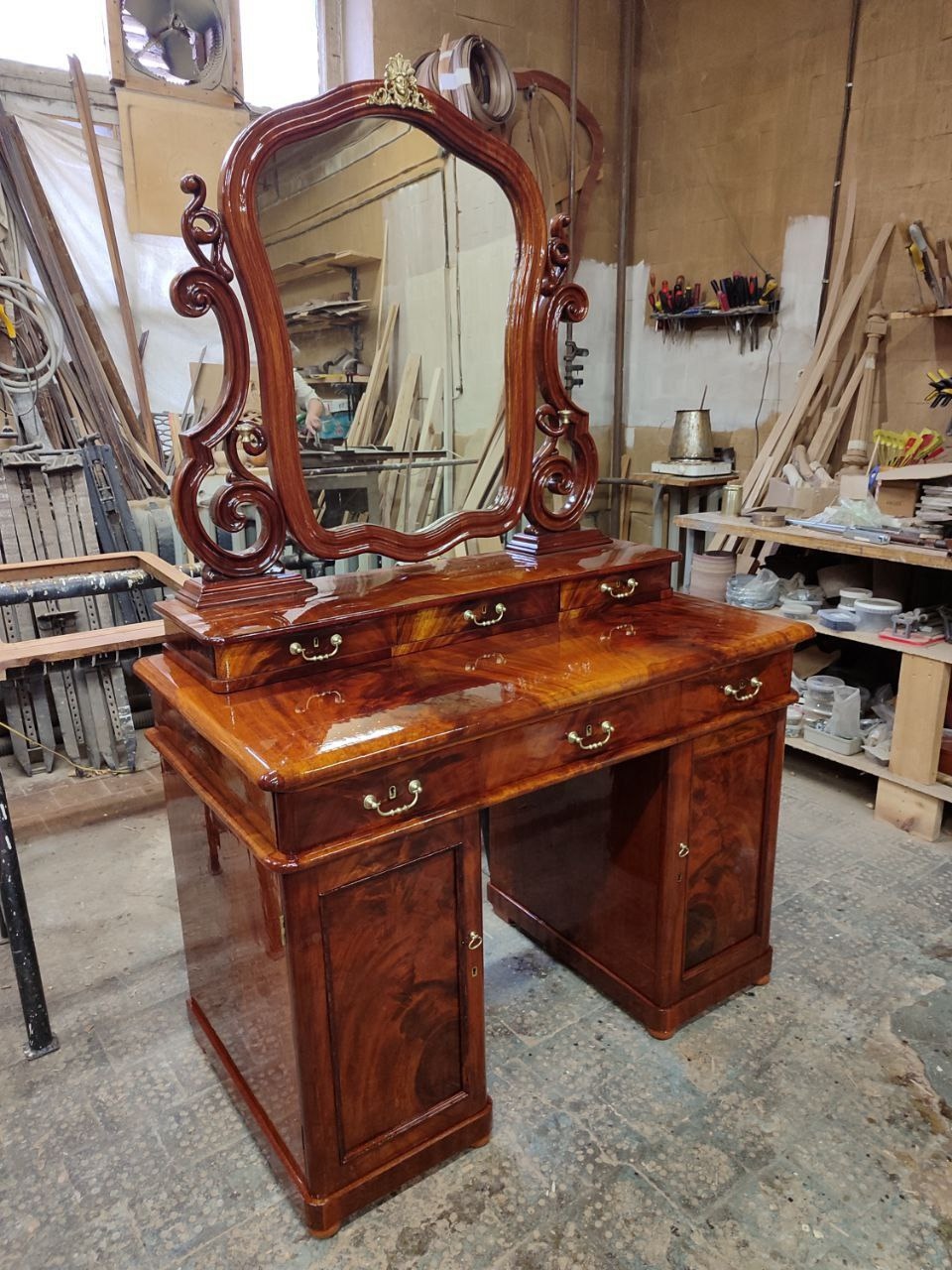 Реставрация туалетного столика, которому не меньше 200-т лет, моего младшего сына Алексея. Мы с мужем тоже принимали участие в работе. Стол был в плачевном состоянии.